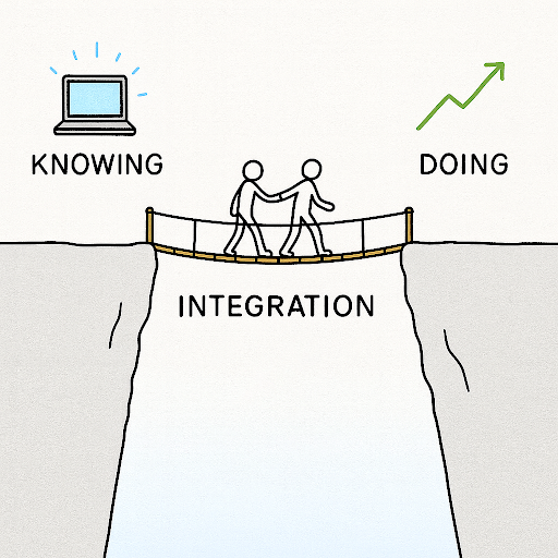 Integration is the bridge between knowing and doing. It’s what helps someone take generic best practices and apply them to their specific situation, with their particular constraints, their unique context, and their actual goals.