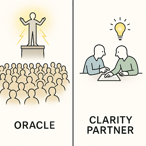 That means the Clarity Partner is even more valuable than being an oracle because everyone has access to the same AI oracles. But not everyone has access to someone who can see their blind spots and recognize their patterns. They don’t know someone who will help them understand not just what to do but why they’re not doing it… and them hold them accountable to actually do it.
