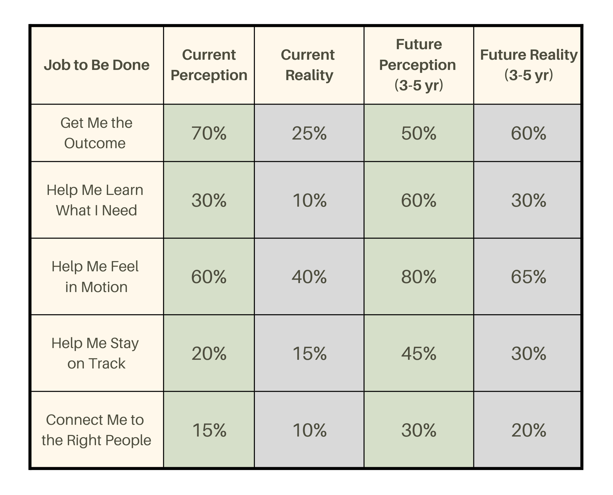 For each of these jobs, there’s a dramatic disconnect between what people think AI can do versus what it actually delivers. So let’s examine the core jobs people hire online courses to do, and how AI is disrupting each one.