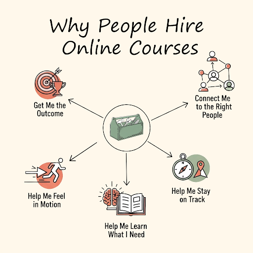 I’ve spent over a decade creating courses, and I’ve helped thousands of course creators grow their impact with educational products. And I’ve found that people hire courses for five core jobs:
