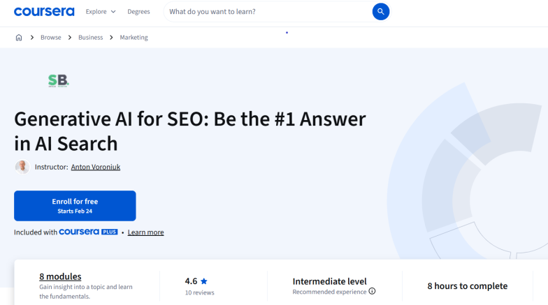 10. Generative AI for SEO: Be the #1 Answer in AI Search (Coursera)