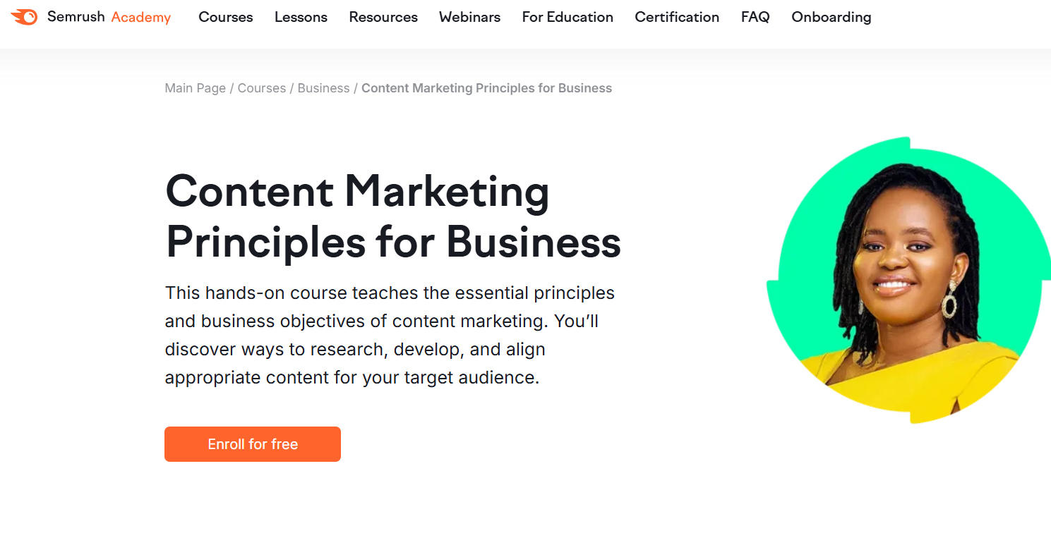 Semrush Academy’s content marketing course provides a practical introduction to content strategy with strong SEO integration.