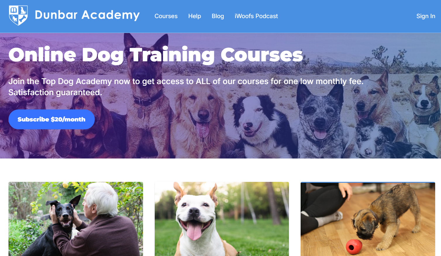 Dunbar Academy serves new dog owners through structured online courses and a recurring membership model.