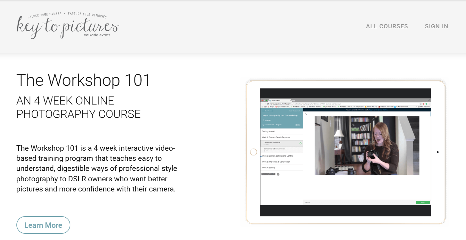 Key to Pictures provides structured photography training hosted directly on Thinkific.