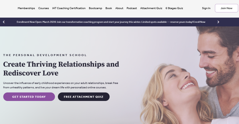 Personal Development School offers a large catalog of personal growth courses, primarily focused on attachment theory.